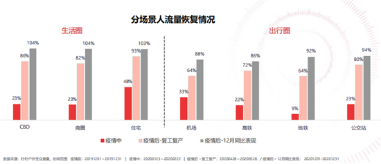 疫情后分場景人流量恢復(fù)情況